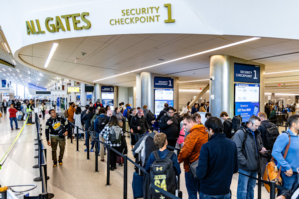 - Es posible que se ajusten las colas de los puntos de inspección de seguridad durante las horas pico de viaje para dar paso a las multitudes previstas. Ponga mucha atención a la señalización y a las indicaciones del personal.