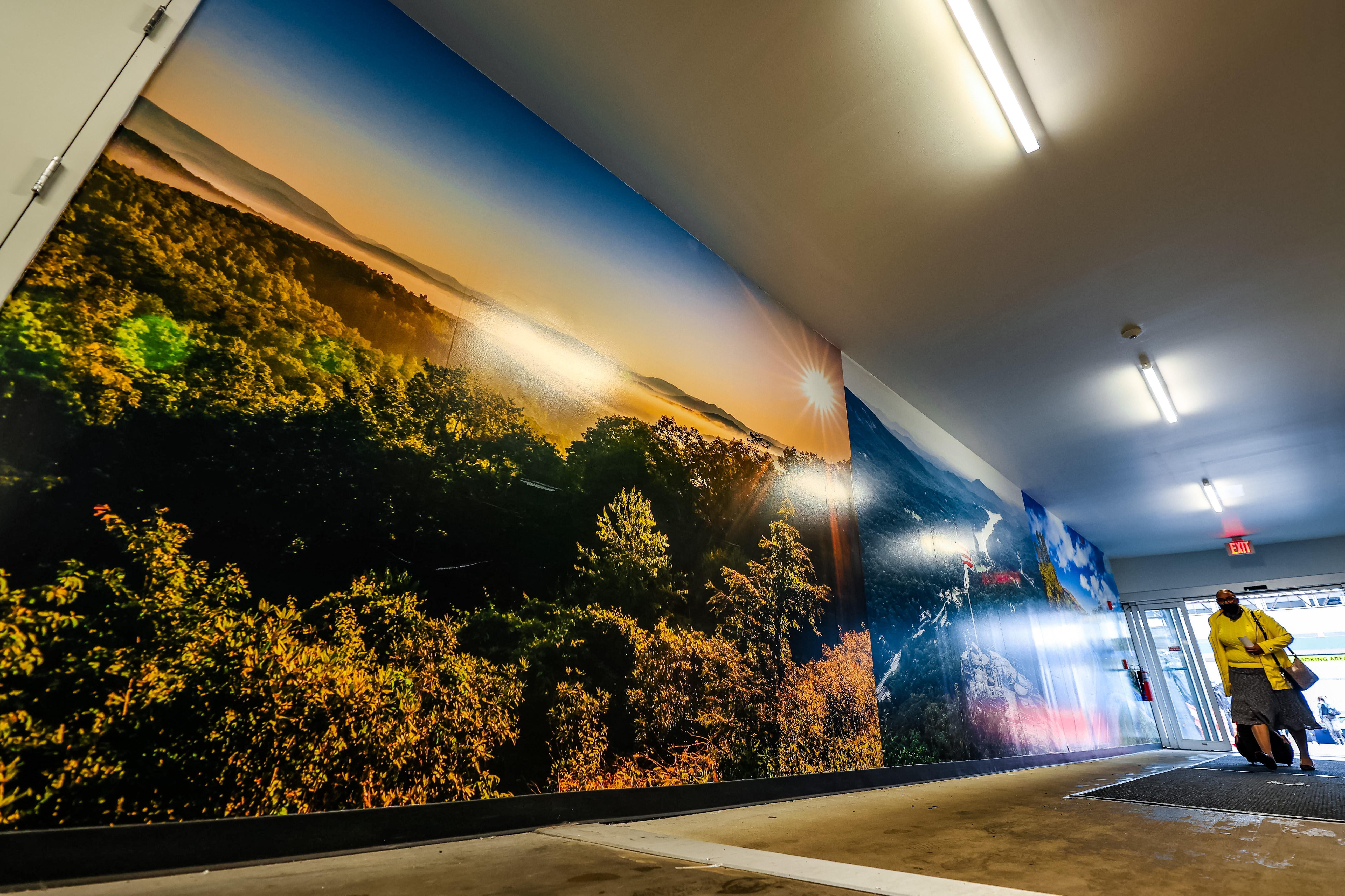Mountain scenery adorns the upper level, and coastal locations enhance the lower level. Scenic vistas include the Outer Banks, Cape Hatteras Lighthouse, Beach Head Island, the Blue Ridge Parkway, Chimney Rock and Great Smokey Mountains Railroad. The images, which were installed in February, also have been helping with wayfinding by providing passengers a point of reference for their location within the terminal. They make picture-perfect selfie stations as well.