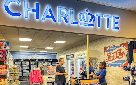 Charlotte is a compact store that offers a lot. Snacks, beverages, clothing, personal hygiene items and periodicals are all easy to spot. There are even sections designated to technology and inspirational readings.